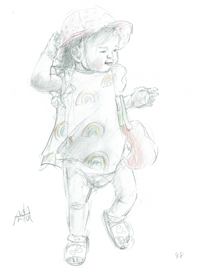 ※えんぴつでクロッキー後、色えんぴつで彩色